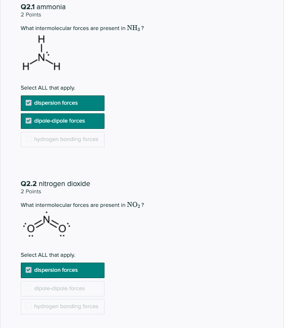 Solved Q2.1 Ammonia 2 Points What Intermolecular Forces Are | Chegg.com