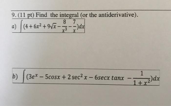 Solved 9.(11 Pt) Find The Integral (Or The Antiderivative). | Chegg.com